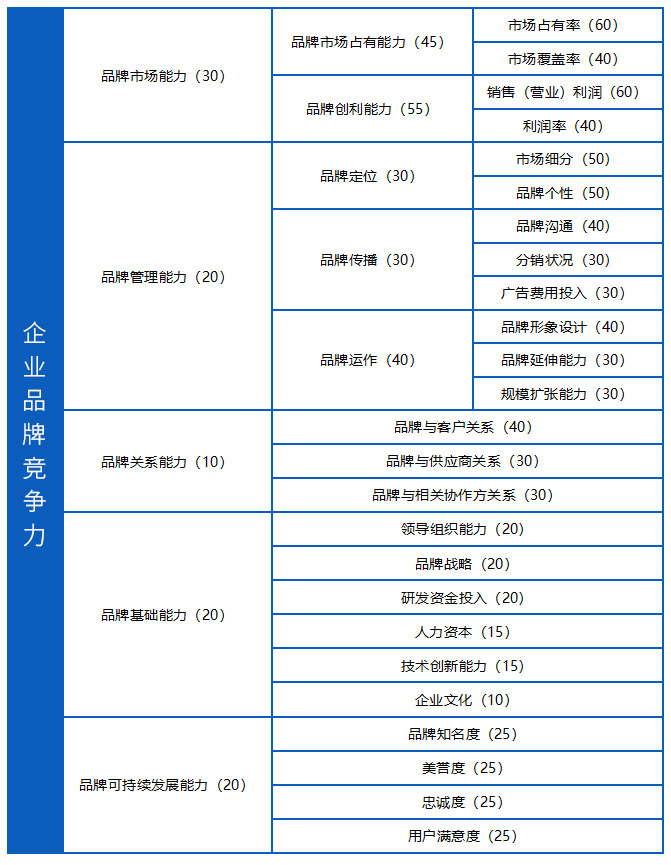 3、品牌競爭力評價指標體系
